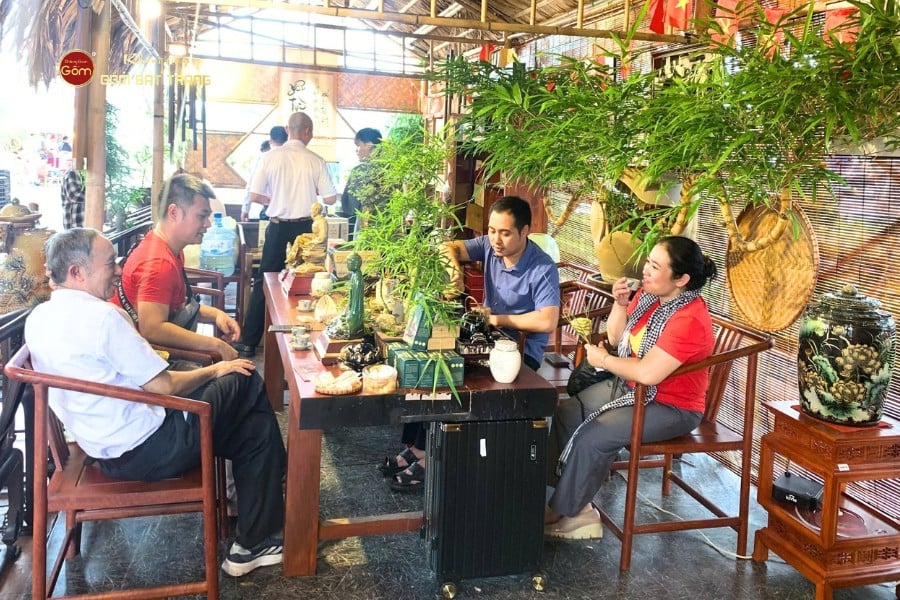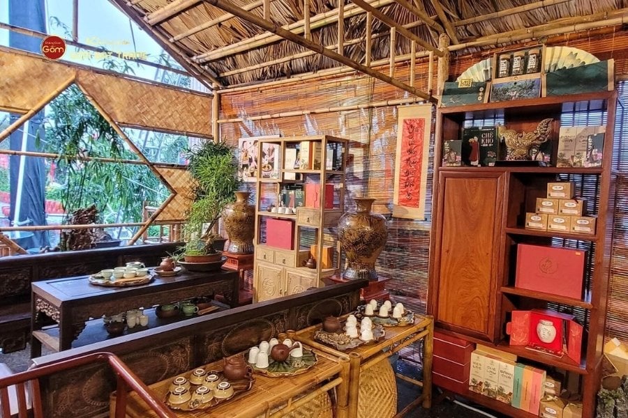 Không Gian Văn Hóa Trà Việt do An Thổ Túc phối hợp cùng nghệ nhân Nguyễn Cao Sơn thực hiện là điểm nhấn đặc biệt của triển lãm năm nay. Đây không chỉ là một không gian trưng bày mà còn là một hành trình trải nghiệm đầy thi vị, đưa người xem đắm chìm trong nghệ thuật trà đạo – tinh hoa từ hương vị, hình ảnh đến tinh thần thưởng trà đặc trưng của người Việt.