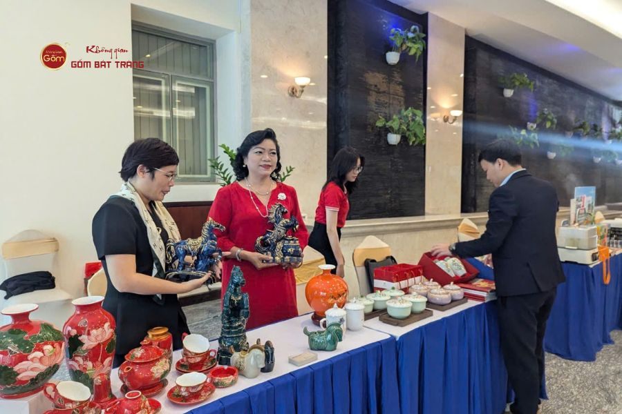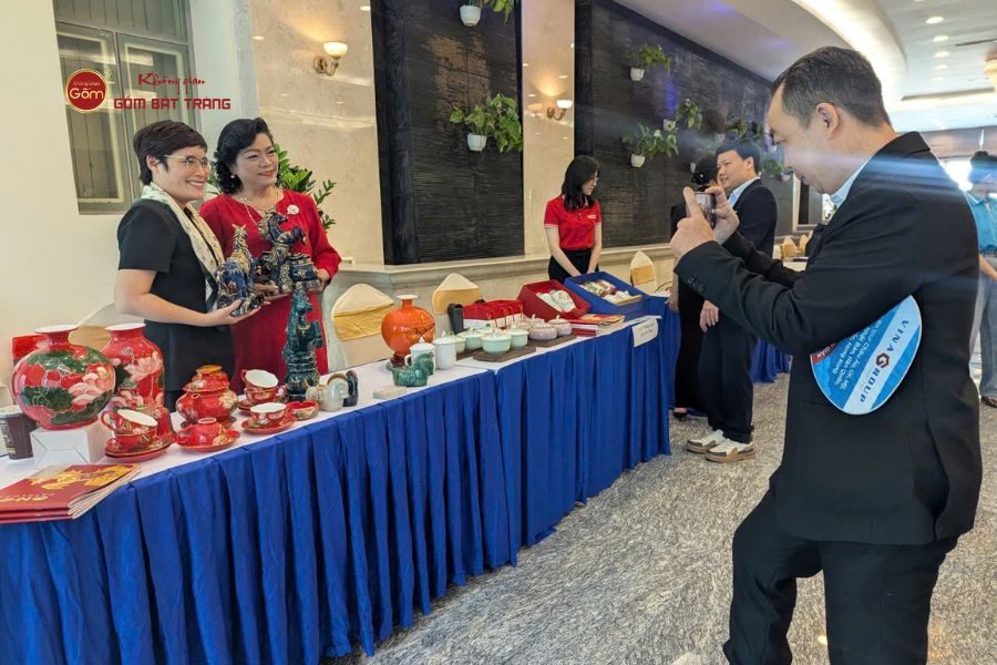 Mỗi sản phẩm là một câu chuyện văn hóa, một thông điệp thẩm mỹ được thể hiện bằng đường nét thủ công tinh xảo, góp phần lan tỏa vẻ đẹp gốm Việt đến cộng đồng doanh nhân và khách tham dự. Sự chỉn chu trong trưng bày và chất lượng sản phẩm đã giúp doanh nghiệp ghi điểm tuyệt đối trong mắt đối tác.