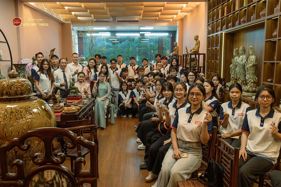 Ngày 6/1/2026, Không Gian Gốm Bát Tràng chào đón đoàn giảng viên và 40 sinh viên ưu tú đến từ Khoa Quản Trị Du Lịch và Khách Sạn của Trường Đại Học Kinh Tế Tài Chính TP.HCM (UEF). Đây là hoạt động tham quan học tập thực tế, nhằm mang đến cái nhìn sâu sắc về văn hóa bản địa, nghệ thuật gốm sứ và Trà đạo Việt Nam cho những nhà quản trị du lịch tương lai. Buổi talkshow và tham quan không chỉ dừng lại ở lý thuyết mà là những trải nghiệm "mắt thấy, tay sờ, tai nghe" đầy cảm xúc về tinh hoa làng nghề truyền thống ngay giữa lòng Sài Gòn.