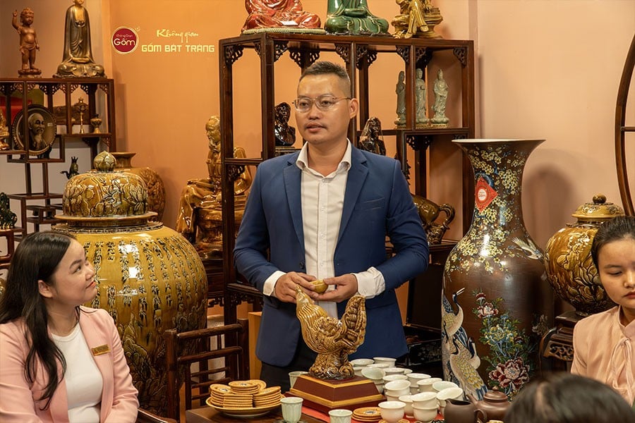 Tại buổi chia sẻ, Ông Lê Trung Liêm – Giám đốc công ty, đã có những chia sẻ tâm huyết về hành trình gìn giữ và phát triển thương hiệu gốm Bát Tràng. Các bạn sinh viên được lắng nghe về lịch sử hình thành làng nghề, quy trình sản xuất kỳ công từ khâu chọn đất, tạo hình đến nung đốt để tạo ra những tác phẩm gốm sứ tinh xảo.