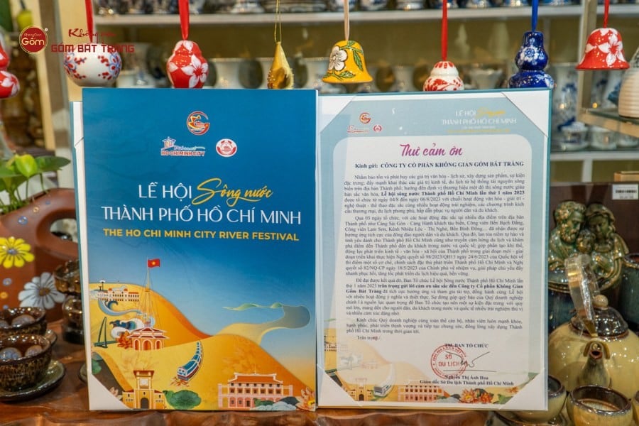 Lễ hội Sông Nước 2023 diễn ra tại bến thủy nội đô sông Thị Nghè, mang đến một không gian văn hóa – du lịch đặc sắc gắn với chủ đề sông nước Nam Bộ. Sự kiện quy tụ hàng chục gian hàng giới thiệu ẩm thực, đặc sản vùng miền, sản phẩm thủ công và nhiều hoạt động trải nghiệm như chèo thuyền, biểu diễn nghệ thuật dân gian, tái hiện chợ nổi. Không Gian Gốm Bát Tràng tham gia với gian hàng trưng bày các sản phẩm gốm sứ gia dụng, đồ trang trí, quà lưu niệm và dòng sản phẩm An Thổ Túc, góp phần làm phong phú thêm không gian lễ hội.