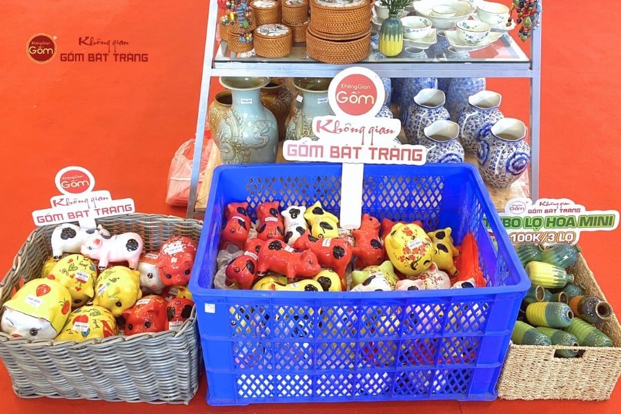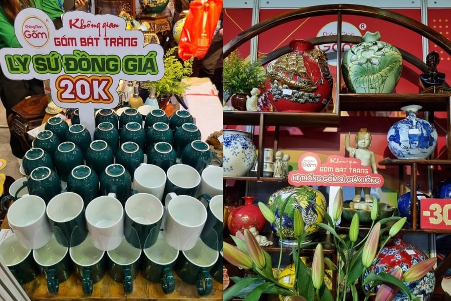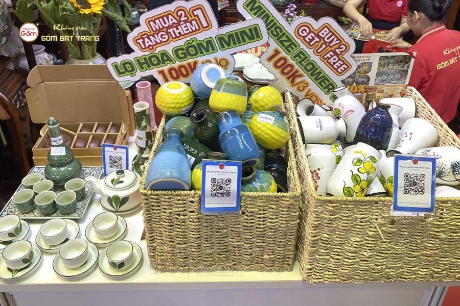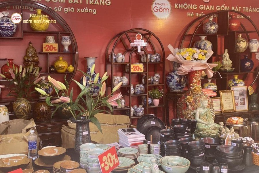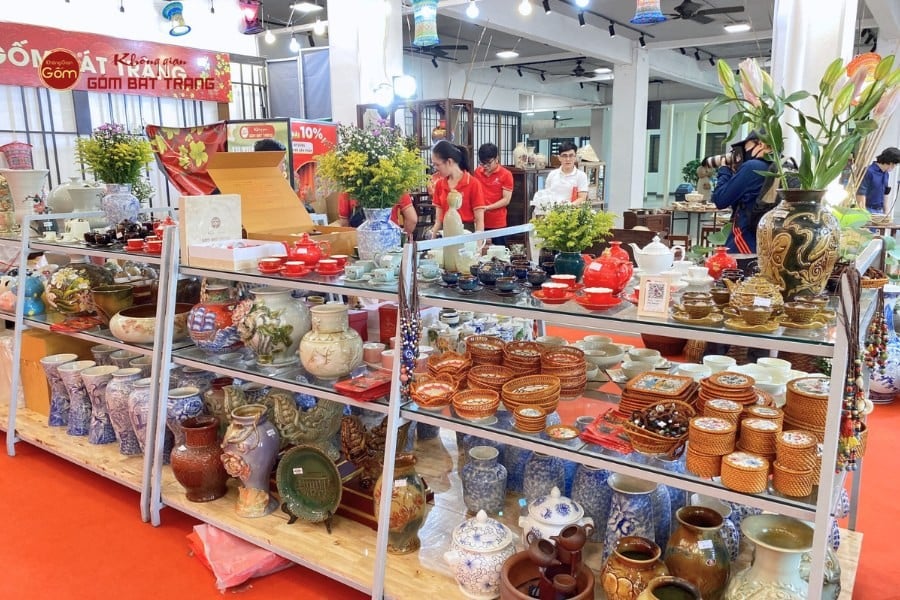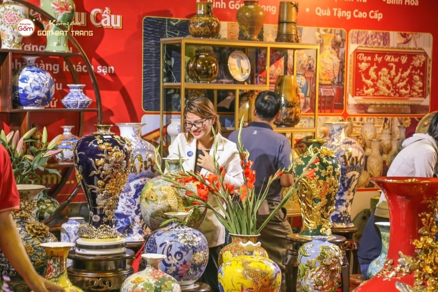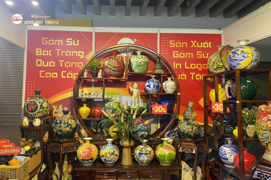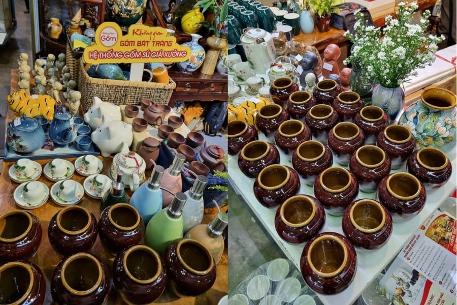 Gian hàng gốm Bát Tràng mang đến không khí vừa gần gũi, vừa sang trọng. Các sản phẩm gia dụng như bát, đĩa, ấm trà đáp ứng nhu cầu hằng ngày; trong khi đồ thờ và các dòng sản phẩm phong thủy, decor lại thu hút khách hàng muốn tìm sự trang nhã và ý nghĩa tinh thần. Đặc biệt, những món quà lưu niệm nhỏ gọn được nhiều khách tham quan lựa chọn nhờ tính thẩm mỹ cao, giá cả hợp lý và dễ dàng mang theo.