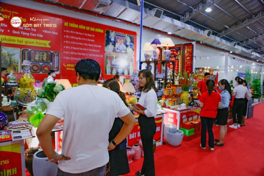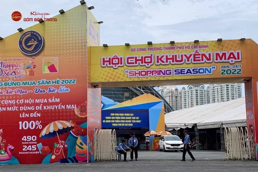 Hội chợ Khuyến mãi “Shopping Season” 2022 diễn ra tại Nhà thi đấu Phú Thọ, là một trong những sự kiện thương mại – mua sắm lớn nhất năm tại TP.HCM. Với sự tham gia của hàng trăm doanh nghiệp đến từ nhiều ngành hàng: tiêu dùng, thời trang, ẩm thực, điện máy và thủ công mỹ nghệ, hội chợ đã tạo nên một không gian sôi động, đáp ứng nhu cầu mua sắm đa dạng của người dân thành phố. Không Gian Gốm Bát Tràng góp mặt với gian hàng trưng bày nhiều sản phẩm gốm sứ gia dụng, đồ thờ, quà lưu niệm và các thiết kế trang trí đặc sắc, đi kèm nhiều ưu đãi hấp dẫn.