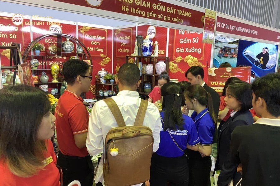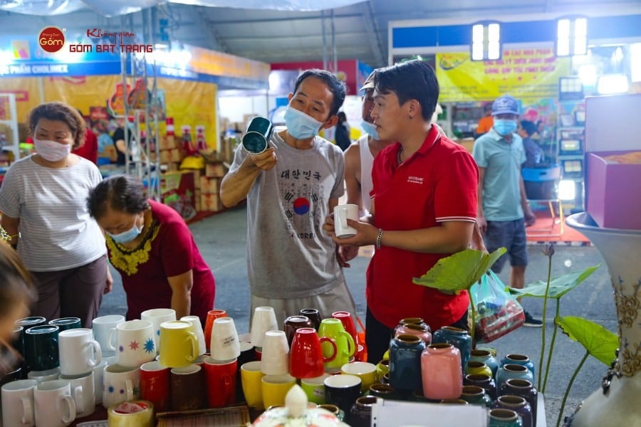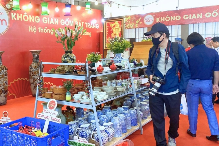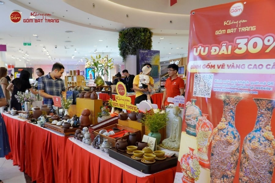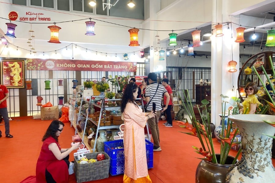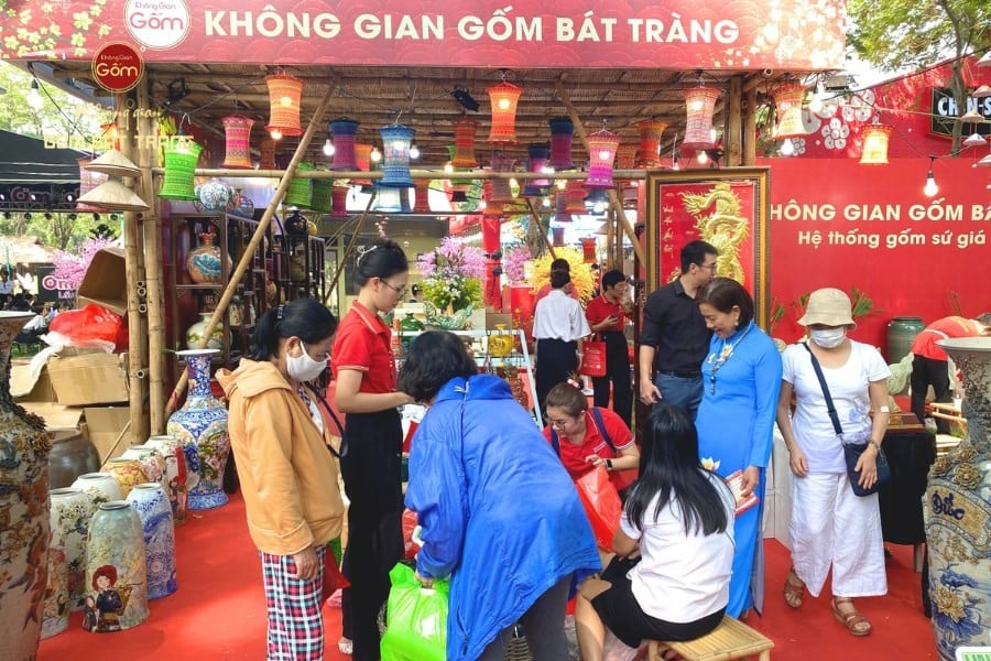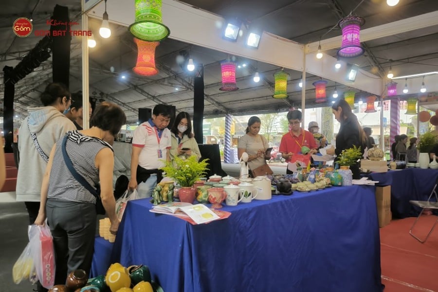 Khách tham quan mua sắm tại gian hàng của Không Gian Gốm Bát Tràng