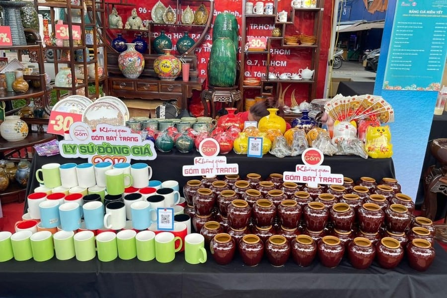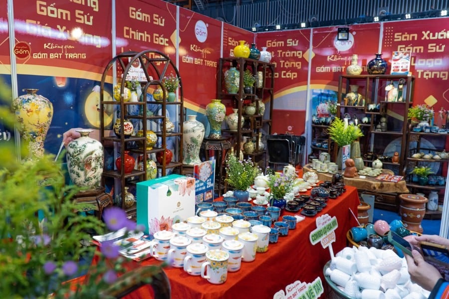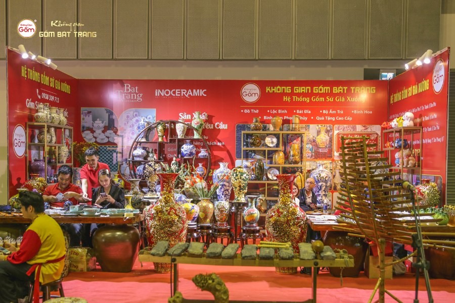 Trong không gian hội chợ náo nhiệt ấy, Không Gian Gốm Bát Tràng tham gia với gian hàng trưng bày các sản phẩm gốm sứ tinh xảo: từ quà lưu niệm nhỏ gọn, tiện lợi cho khách du lịch quốc tế, đến các sản phẩm gia dụng, đồ thờ và trang trí mang đậm dấu ấn văn hóa Việt. Gian hàng được thiết kế trang nhã, ấm cúng, tạo cảm giác gần gũi, thu hút đông đảo du khách đến tham quan và tìm hiểu.