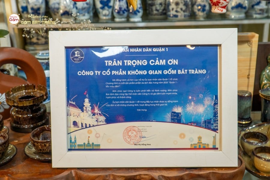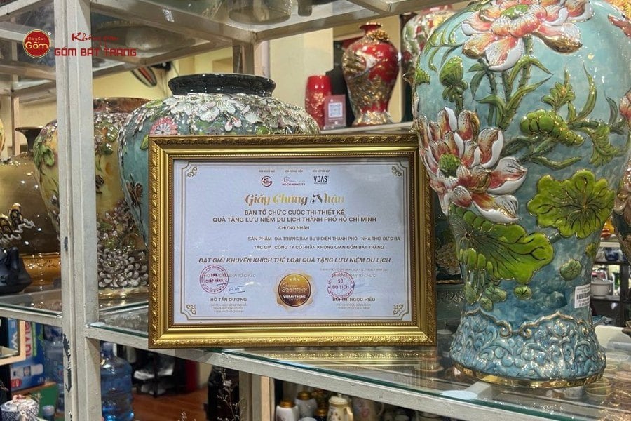 Trong sự kiện này, Không Gian Gốm Bát Tràng vinh dự nhận giải Khuyến khích với sản phẩm dự thi “Đĩa trưng bày Bưu điện Thành phố – Nhà thờ Đức Bà”. Đây là tác phẩm đặc biệt, khắc họa hình ảnh hai công trình biểu tượng của Sài Gòn – TP.HCM trên chất liệu gốm Bát Tràng truyền thống. Sản phẩm vừa thể hiện sự tinh xảo của kỹ thuật gốm, vừa mang tính biểu tượng cao, trở thành món quà lưu niệm ý nghĩa dành cho du khách khi đến thăm thành phố.