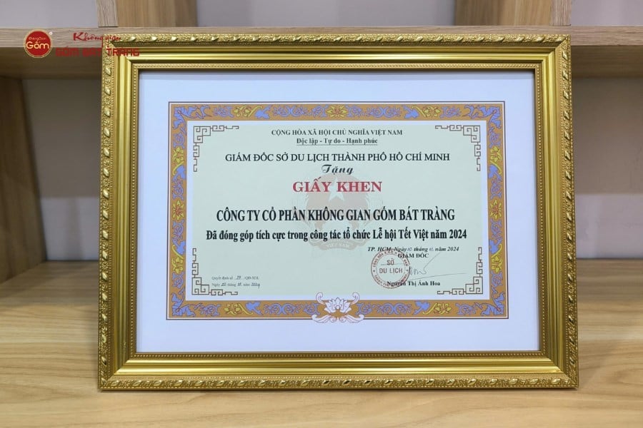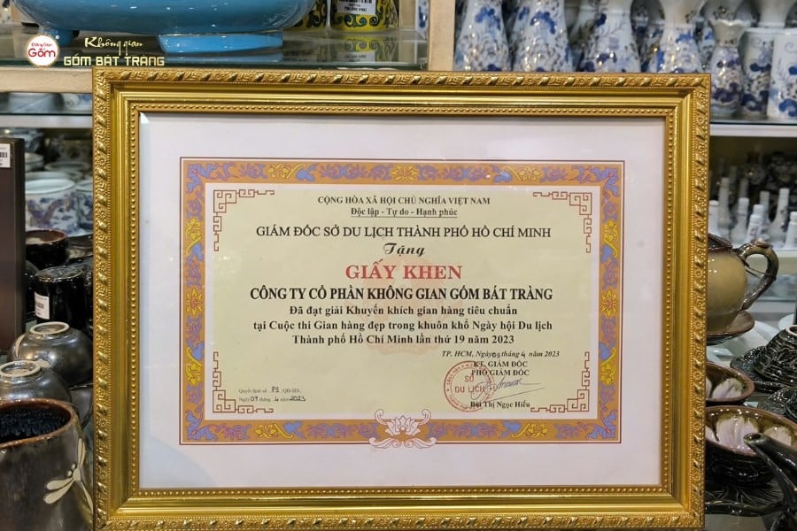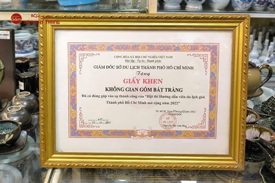 Không Gian Gốm Bát Tràng nhận Giấy Khen từ Sở Du lịch