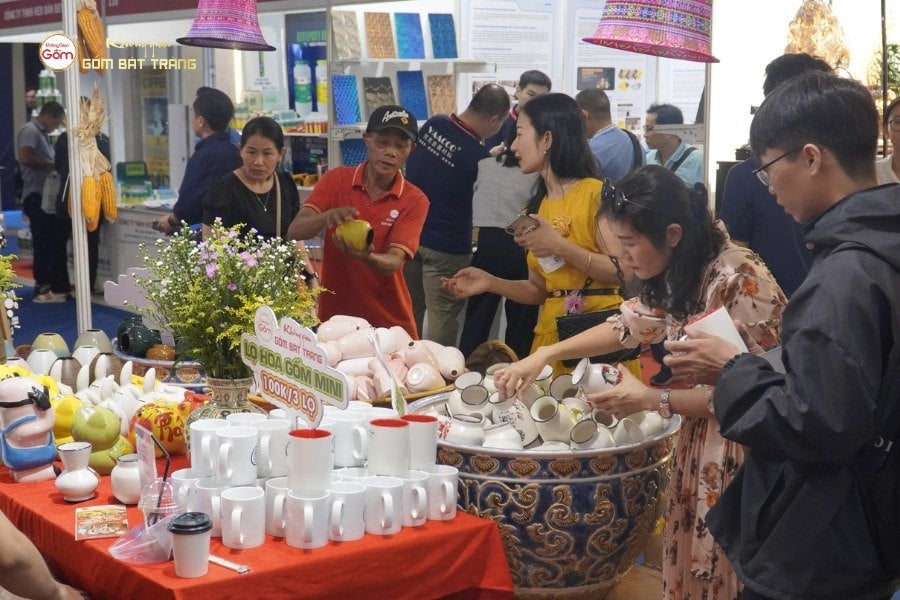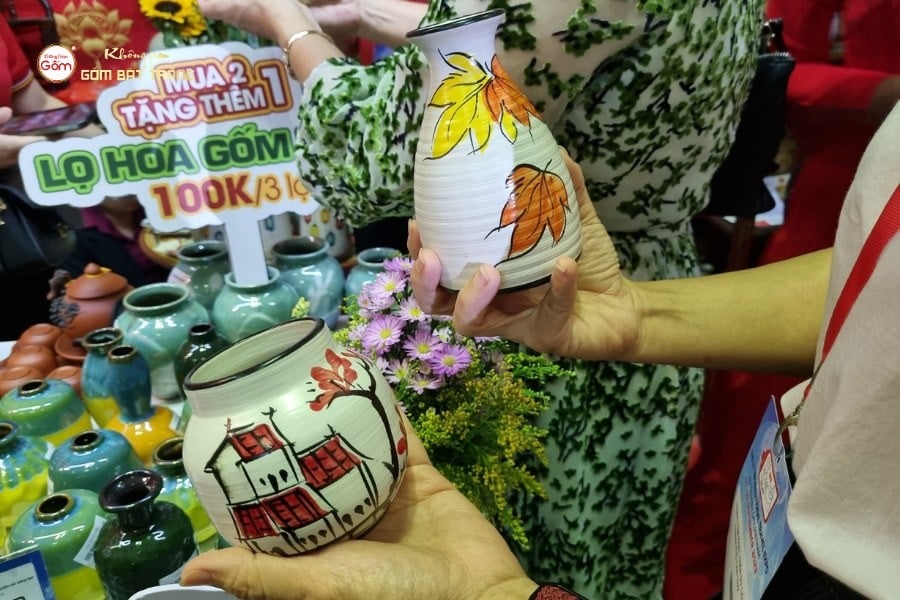 Khách tham quan khi đến với gian hàng không chỉ được chiêm ngưỡng, mua sắm sản phẩm, mà còn được lắng nghe về hành trình làm gốm – từ khâu chọn đất, tạo hình đến nung lửa. Những câu chuyện ấy giúp sản phẩm trở nên sống động, không chỉ là vật dụng hay vật phẩm trang trí, mà còn là kết tinh của văn hóa, nghệ thuật và tâm hồn người Việt.