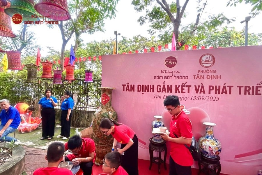 Đặc biệt, Không Gian Gốm Bát Tràng đã vinh dự góp mặt trong chương trình với hai hoạt động nổi bật: gian hàng trưng bày và bán sản phẩm gốm sứ thủ công, cùng không gian trải nghiệm làm gốm dành cho người dân. Gian hàng của Không Gian Gốm Bát Tràng thu hút đông đảo khách tham quan bởi sự tinh tế, độc đáo trong từng sản phẩm – từ đồ gia dụng, quà tặng đến các tác phẩm nghệ thuật gốm sứ mang đậm hồn Việt. Không chỉ dừng lại ở việc giới thiệu sản phẩm, hoạt động trải nghiệm làm gốm còn tạo cơ hội để mọi người, đặc biệt là các em nhỏ, được trực tiếp chạm tay vào đất sét, nặn gốm và hiểu thêm về giá trị của một làng nghề truyền thống đã đồng hành cùng văn hóa dân tộc hàng trăm năm qua.
