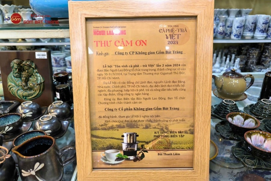Thư cảm ơn Báo Người Lao Động gửi Không Gian Gốm Bát Tràng