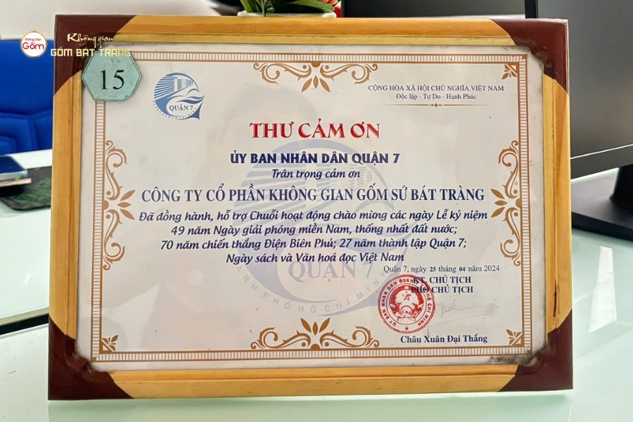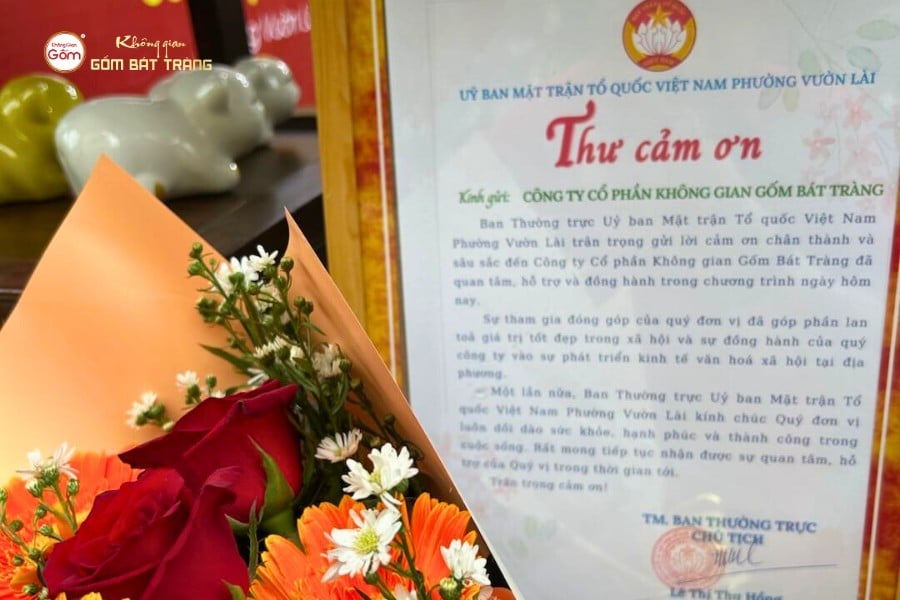 Thư cảm ơn Chủ tịch MTTQ phường Vườn Lài gửi Không Gian Gốm Bát Tràng