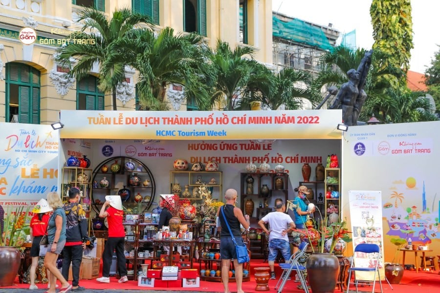 Tuần lễ Du lịch TP.HCM năm 2022 được tổ chức ngay tại Bưu điện Trung tâm – một công trình kiến trúc biểu tượng của thành phố. Sự kiện quy tụ nhiều doanh nghiệp lữ hành, khách sạn, nhà hàng, cùng các gian hàng văn hóa, thủ công và quà lưu niệm, nhằm quảng bá hình ảnh TP.HCM như một điểm đến thân thiện, năng động và giàu bản sắc. Không Gian Gốm Bát Tràng tham gia với gian hàng trưng bày các sản phẩm gốm sứ thủ công: đồ gia dụng, đồ thờ, gốm trang trí, quà lưu niệm, cùng những thiết kế mới lạ mang hơi thở đương đại.