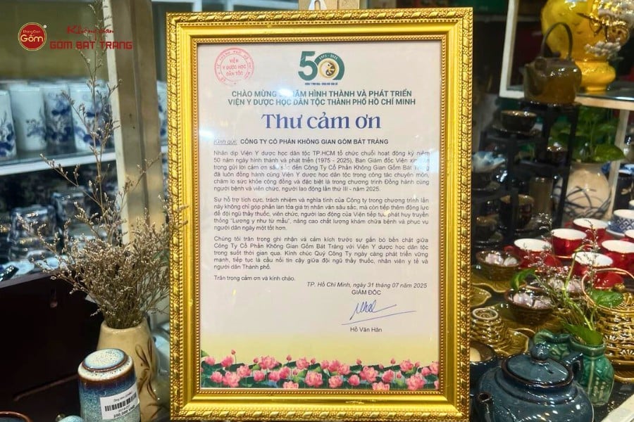 Thư cảm ơn Viện Y dược học dân tộc TPHCM gửi Không Gian Gốm Bát Tràng