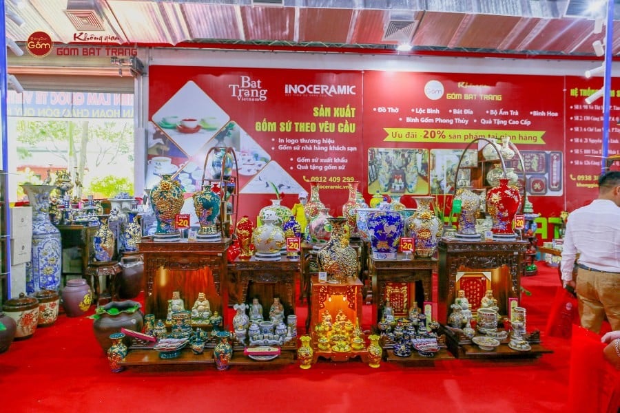 Hội chợ Triển lãm “Tôn vinh hàng Việt – năm 2023” được tổ chức tại SECC với sự tham gia của hàng trăm doanh nghiệp trong nhiều lĩnh vực: tiêu dùng, nông sản, thủ công mỹ nghệ, thời trang, ẩm thực và dịch vụ. Sự kiện nhằm quảng bá, khẳng định chất lượng sản phẩm Việt, đồng thời tạo cơ hội kết nối giao thương giữa doanh nghiệp và người tiêu dùng. Không Gian Gốm Bát Tràng tham gia với gian hàng trưng bày nhiều sản phẩm gốm sứ tiêu biểu: bộ đồ thờ, bình trang trí, quà lưu niệm và gốm gia dụng.