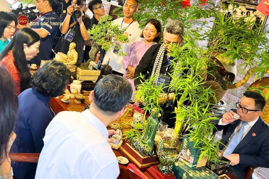 Sự góp mặt của Không Gian Gốm Bát Tràng tại sự kiện này là một điểm nhấn đặc biệt. Bởi lẽ, để thưởng thức trọn vẹn tinh hoa của trà hay cà phê, không thể thiếu những bộ ấm chén, ly tách phù hợp. Các sản phẩm gốm sứ không chỉ đóng vai trò là vật dụng thường ngày, mà còn thể hiện phong cách sống, gu thẩm mỹ và cả sự trân trọng văn hóa truyền thống. Khi du khách trải nghiệm hương vị trà trong một tách gốm Bát Tràng, đó cũng là lúc họ cảm nhận sự giao hòa giữa nghệ thuật thủ công và tinh thần Việt.