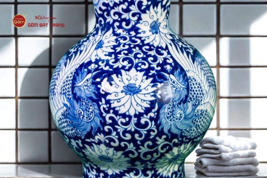 Trong quá trình sử dụng, hãy hạn chế tối đa các va chạm mạnh. Lọ hoa Bát Tràng tuy rắn chắc nhưng vẫn cần được nâng niu như một kiệt tác nghệ thuật. Khi lau chùi, gia chủ chỉ nên dùng khăn mềm và nước sạch. Không dùng hóa chất mạnh hay vật liệu có độ nhám cao để tránh làm xước lớp men.