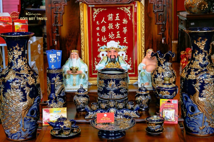 Tượng Thần Tài và Thổ Địa là biểu tượng tâm linh quan trọng trong tín ngưỡng dân gian Việt Nam, được tôn kính trong các gia đình, cửa hàng và doanh nghiệp. Việc đặt tượng đúng phong thủy không chỉ thể hiện sự thành kính mà còn giúp gia chủ thu hút tài lộc, giữ vững vận khí và phát triển sự nghiệp thuận lợi. Bài viết này Không Gian Gốm Bát Tràng sẽ hướng dẫn chi tiết cách chọn vị trí đặt bàn thờ Thần Tài Thổ Địa, hướng đặt tượng theo mệnh, tuổi và ngành nghề, đồng thời chỉ ra những kiêng kỵ quan trọng để tránh hao tài, tán lộc.