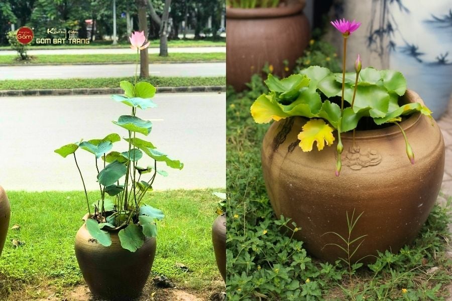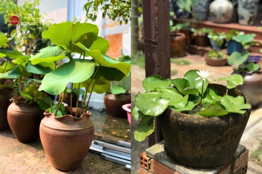 Kết hợp sen và súng hợp lý: Nếu chọn trồng sen, nên dùng chum miệng rộng, độ sâu vừa phải; trồng súng có thể chọn chum thấp hơn để hoa bung nở đẹp mắt.