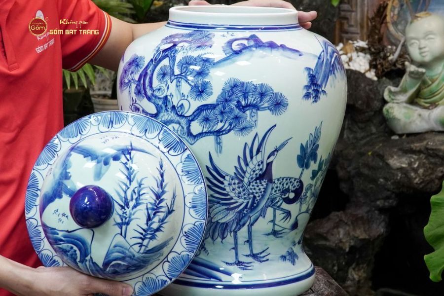 Không Gian Gốm Bát Tràng không chỉ là nơi bán sản phẩm, mà còn là không gian lưu giữ tinh hoa gốm Việt, nơi bạn có thể cảm nhận sự khác biệt của lớp men lam trứ danh, thưởng thức từng đường nét nghệ thuật và mang về vật phẩm chứa đựng giá trị văn hóa lâu đời. Đến đây, bạn sẽ dễ dàng chọn được bình choé Bát Tràng men lam chất lượng cao để sử dụng hoặc làm quà tặng ý nghĩa, sang trọng và đậm đà bản sắc Việt