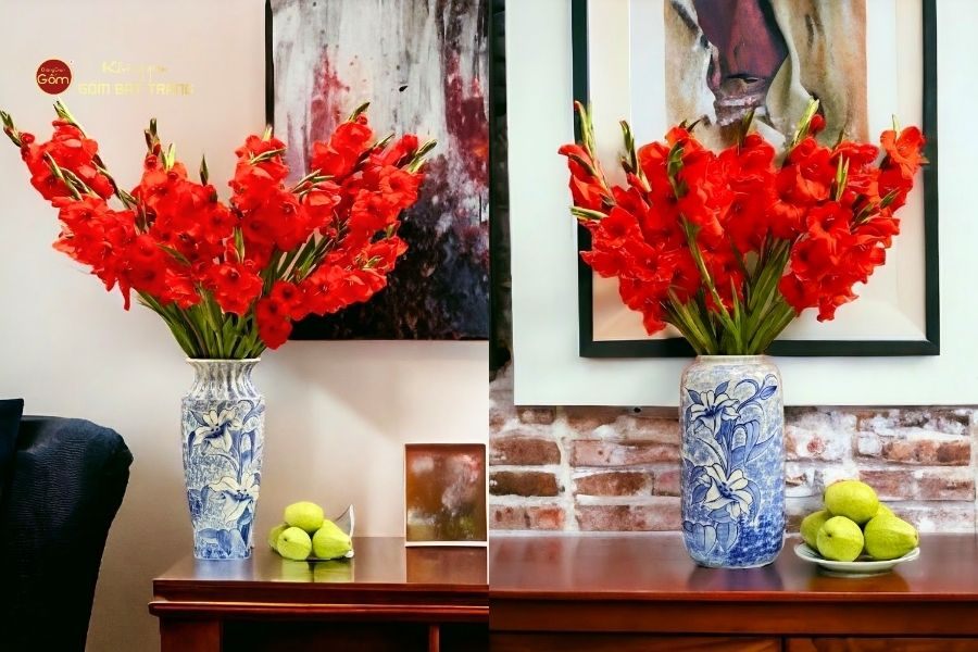 Thứ ba, lọ hoa men lam dễ dàng phù hợp với nhiều không gian: từ phòng khách hiện đại đến bàn thờ gia tiên truyền thống. Nó không chỉ là một món đồ trang trí, mà còn phản ánh rõ gu thẩm mỹ của người sở hữu và sự trân trọng giá trị văn hóa Việt.