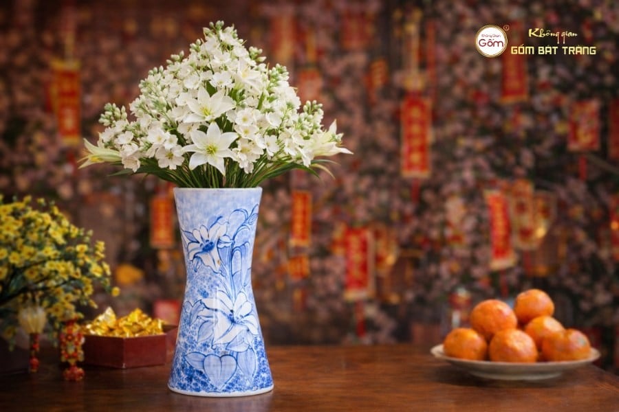 Không Gian Gốm Bát Tràng là địa chỉ phù hợp để chọn lọ hoa men lam cho dịp Tết 2026. Nhà phân phối này nhấn mạnh vào các bộ sưu tập vẽ tay thủ công, cốt gốm chắc, men bóng mịn, và dịch vụ tư vấn, hỗ trợ đặt hàng theo yêu cầu, phù hợp mục đích trang trí hay quà tặng. Đặc biệt, với các mẫu như lọ vò, chóe hoặc ly miệng rộng, khách hàng nhận tư vấn về cách chọn dáng, kích thước, kiểu cắm hoa phù hợp không gian.