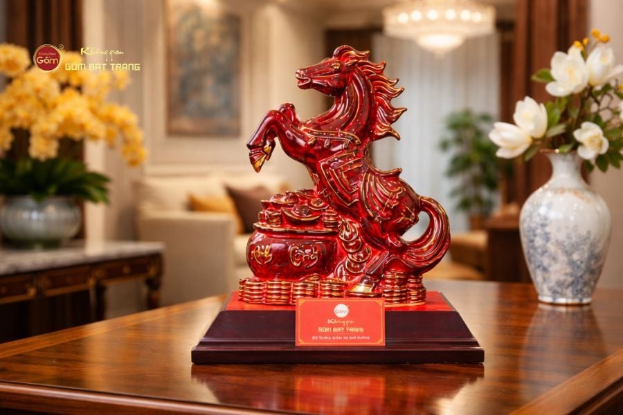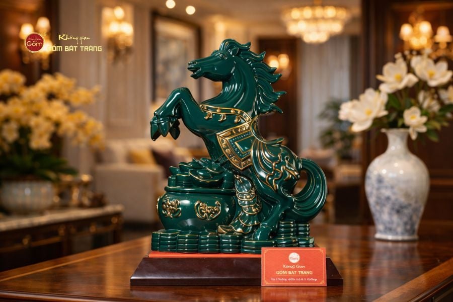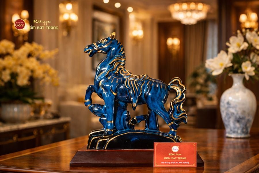 Khi được thể hiện trên chất liệu gốm và kết hợp kỹ thuật vẽ vàng thủ công, tượng ngựa không chỉ mang ý nghĩa động mà còn hội tụ yếu tố tài lộc.