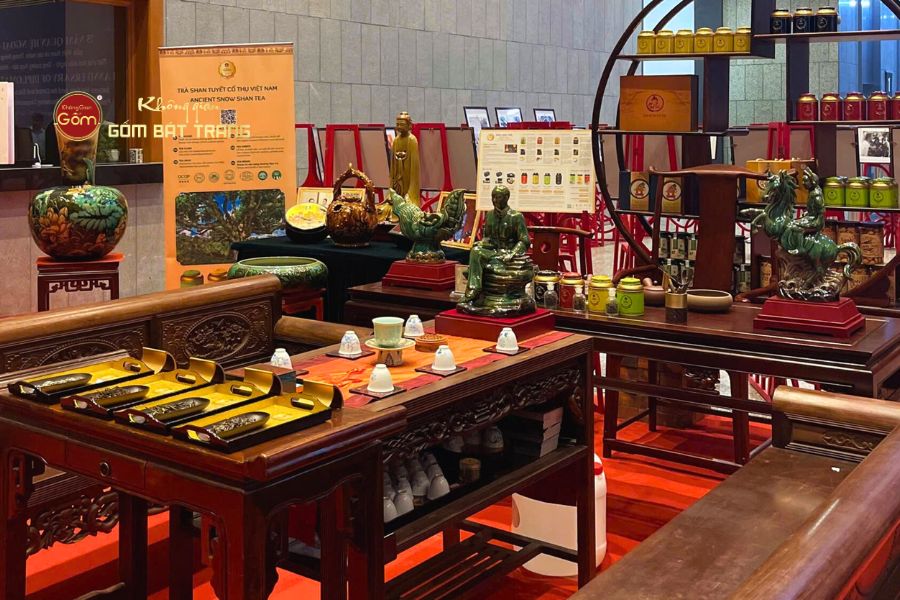 Chất liệu gốm Bát Tràng cao cấp: Được chế tác từ nguồn đất sét tinh luyện, giàu cao lanh, giúp sản phẩm bền chắc và sang trọng.