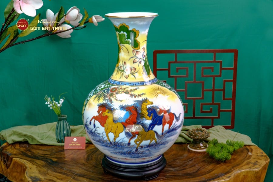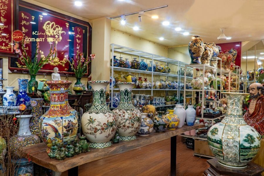 Các mẫu tỏi bình ở đây được nghệ nhân chế tác thủ công, men rạn, men lam, men ngọc hay vẽ vàng đều chuẩn kỹ thuật, mang năng lượng phong thủy tích cực. Ngoài ra, đội ngũ tư vấn am hiểu phong thủy luôn sẵn sàng hỗ trợ chọn kiểu dáng, kích thước và vị trí đặt phù hợp với mệnh của gia chủ. Không Gian Gốm Bát Tràng hiện có nhiều showroom tại TPHCM, giúp khách hàng dễ dàng đến xem và chọn sản phẩm trực tiếp.