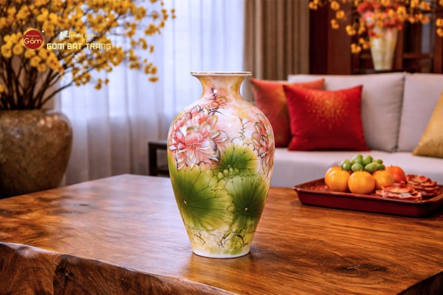 Ngoài ra, Không Gian Gốm Bát Tràng còn cung cấp dịch vụ quà tặng doanh nghiệp (in logo, hộp quà cao cấp, thiệp chúc mừng), giao hàng nhanh tại TP.HCM, đóng gói an toàn và cho phép kiểm tra hàng trước khi thanh toán. Đội ngũ tư vấn phong thủy luôn sẵn sàng hỗ trợ vị trí đặt bình để thu hút tài lộc và may mắn.