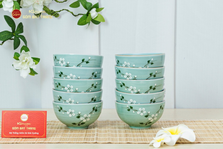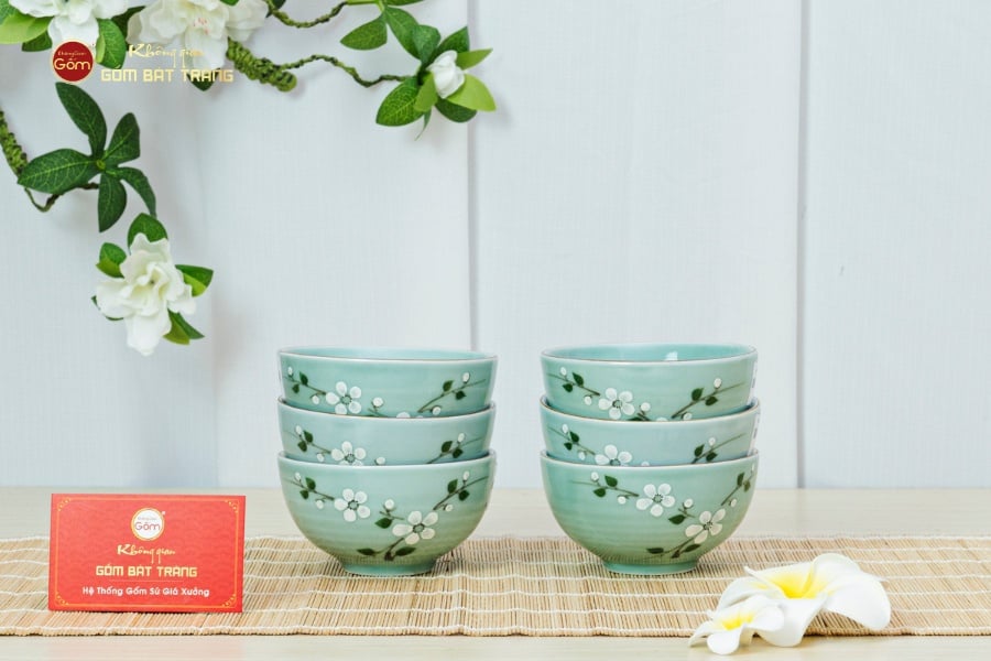 Khi được khắc họa trên nền men ngọc mịn màng, họa tiết hoa đào trắng không chỉ là một điểm nhấn nghệ thuật mà còn mang giá trị phong thủy sâu sắc. Những cánh hoa mong manh nhưng đầy sức sống như một lời nhắc nhở về sự đổi mới, hy vọng và những điều tốt lành trong cuộc sống. Sự xuất hiện của họa tiết này trên từng chiếc Bát Cơm Men Ngọc Hoa Đào Trắng không chỉ tô điểm cho bàn ăn mà còn truyền tải thông điệp về sự đủ đầy, sum vầy trong mỗi bữa cơm gia đình.