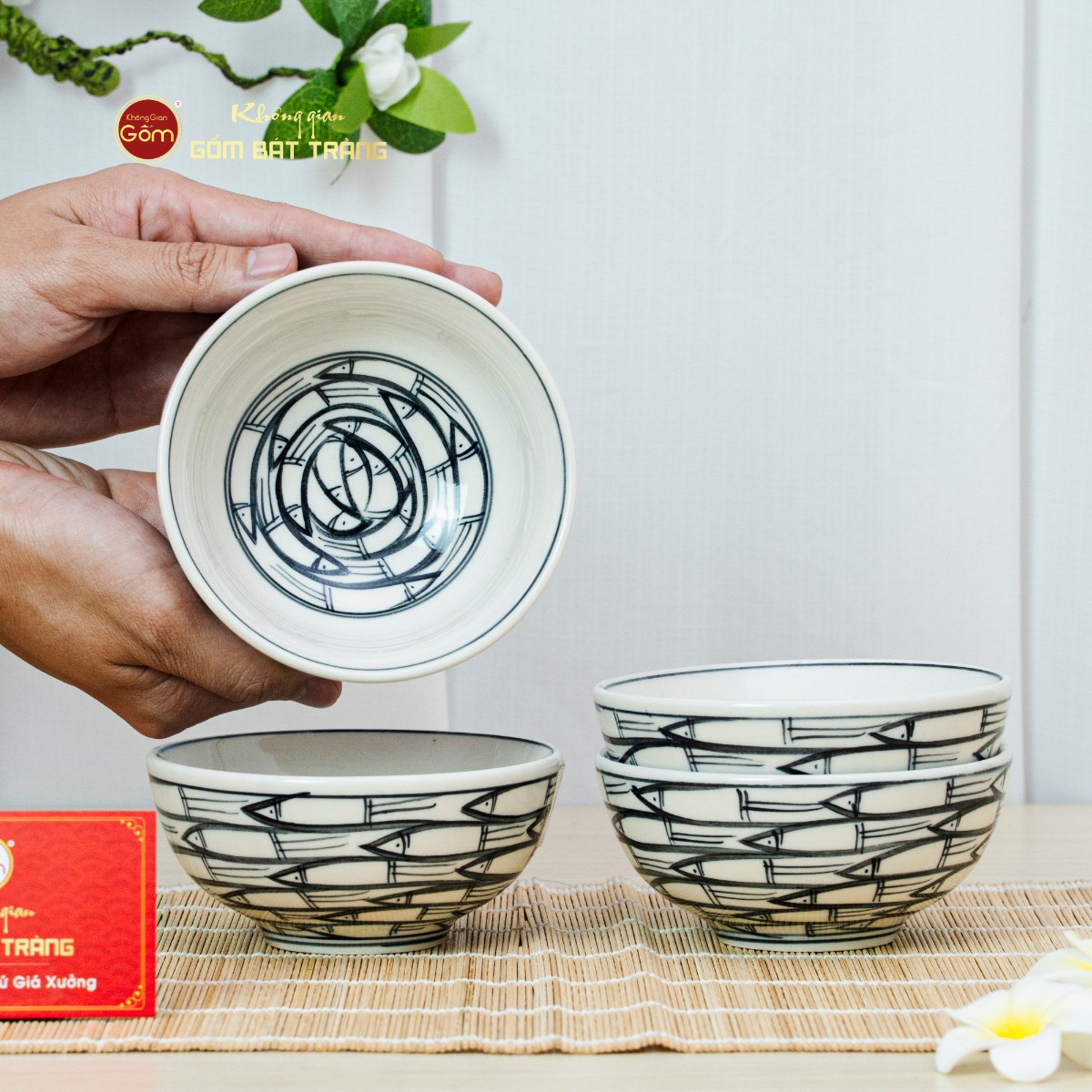 - Tên sản phẩm: Bát Cơm Men Trắng Vẽ Cá Đàn