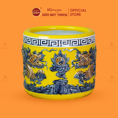 Bát Hương Men Vàng Họa Tiết Song Long Chầu Nguyệt
