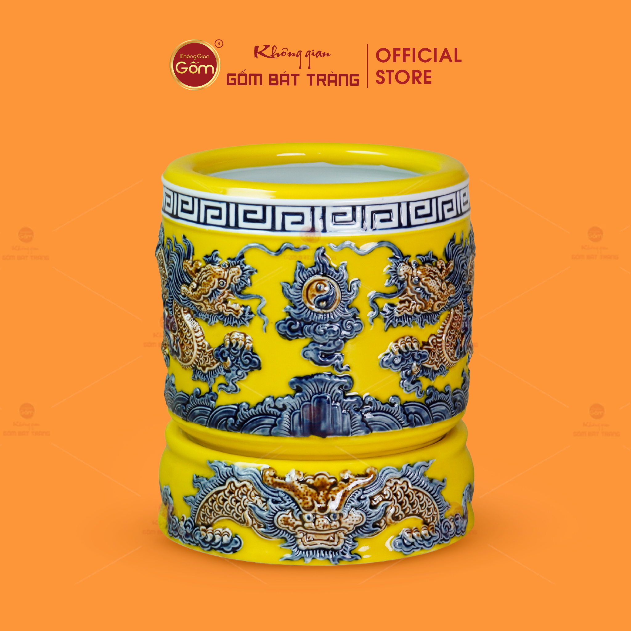 - Tên sản phẩm: Bát Hương Men Vàng Họa Tiết Song Long Chầu Nguyệt