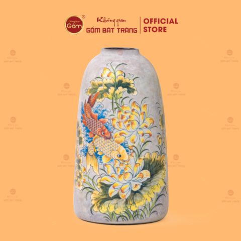 Bình Hoa Dáng Chuông Vẽ Tay Họa Tiết Sen Cá Chép