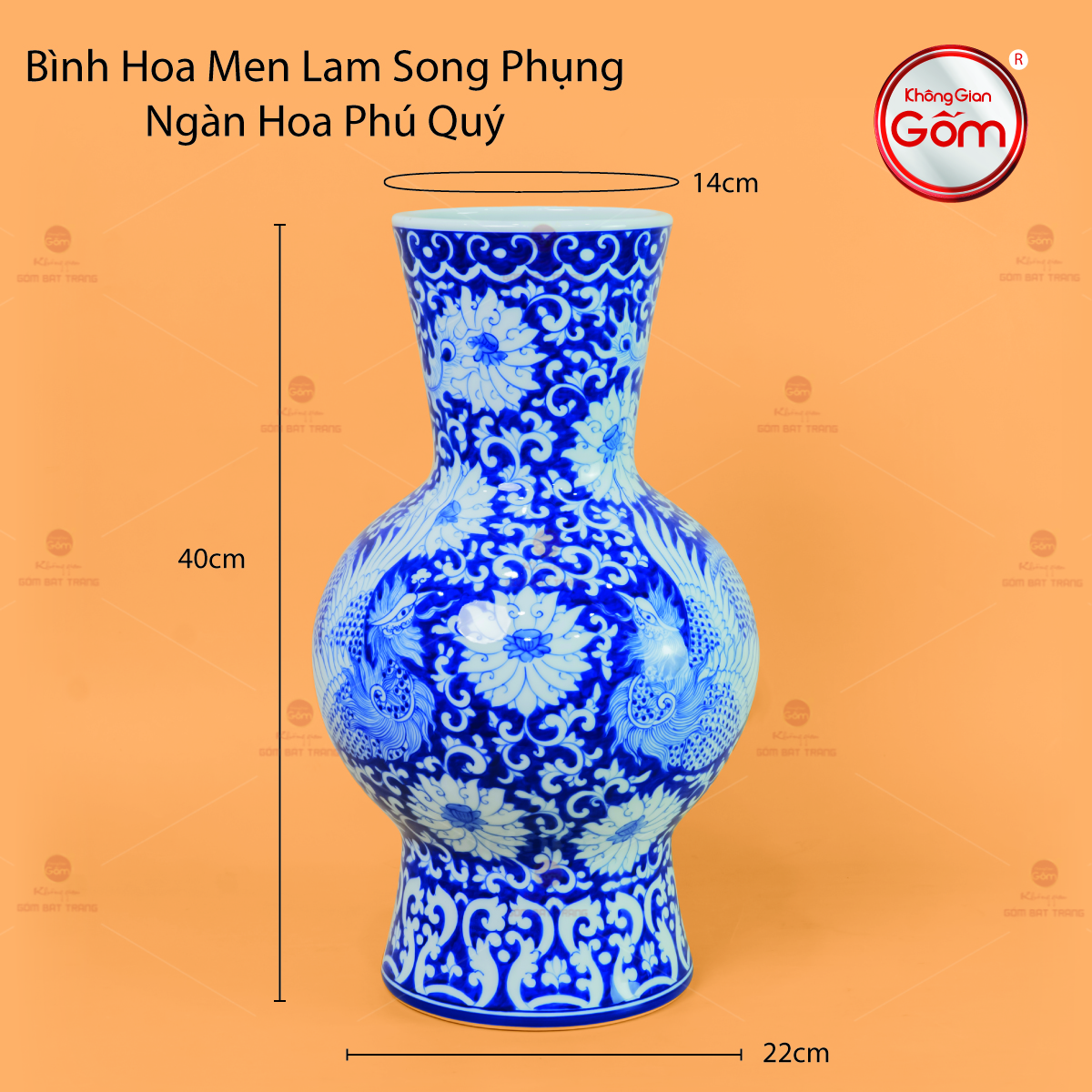 - Tên sản phẩm: Bình Hoa Men Lam Song Phụng Ngàn Hoa Phú Quý 2
