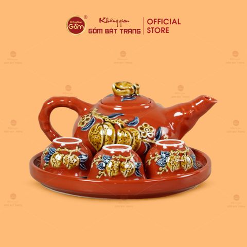 Địa chỉ mua Bộ Ấm 3 Chén Thờ Men Đỏ Họa Tiết Cành Đào