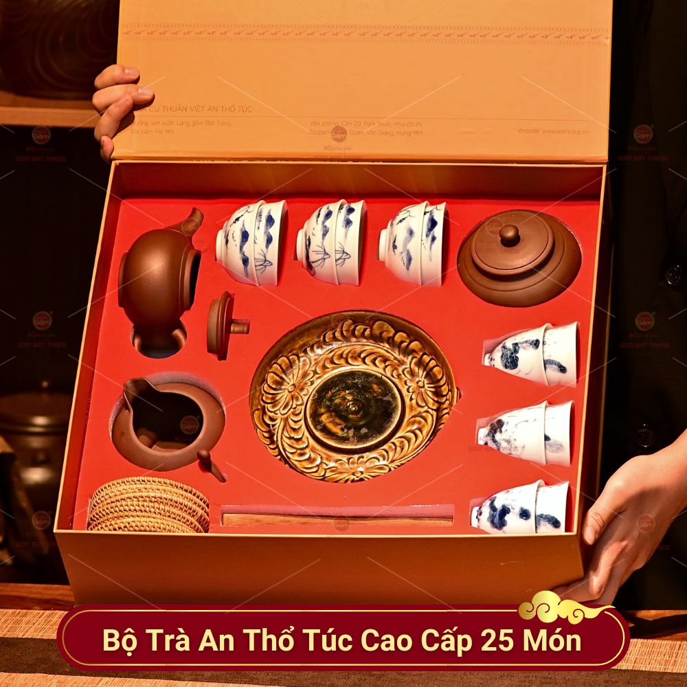 Bộ trà An Thổ Túc Cao Cấp 25 món mang đến những sản phẩm cao cấp, chất lượng có thể sử dụng hàng ngày hoặc làm quà tặng, trưng bày và trang trí.