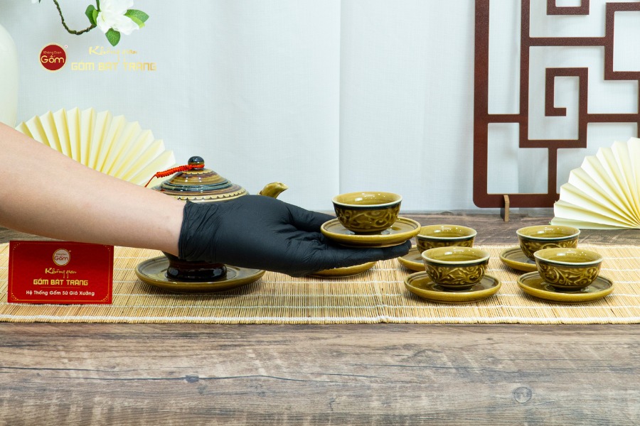 Điểm nổi bật của bộ sản phẩm nằm ở chất liệu gốm Bát Tràng cao cấp, được chọn lọc kỹ lưỡng từ nguồn đất sét tinh khiết, sau đó trải qua quá trình tạo hình và nung ở nhiệt độ trên 1200°C. Nhờ vậy, sản phẩm có độ bền cao, chống nứt mẻ, giữ nhiệt tốt và tuyệt đối an toàn cho sức khỏe người sử dụng.