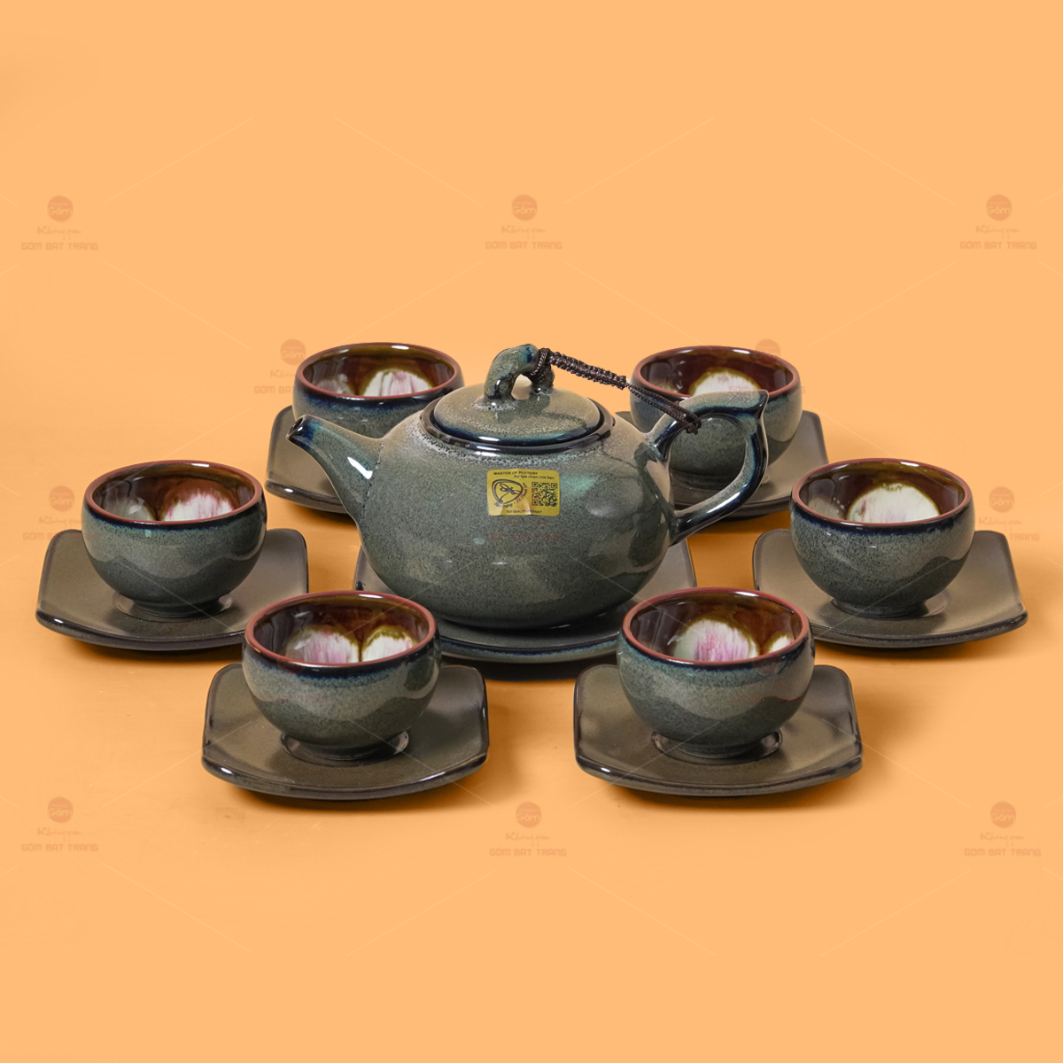 - Tên sản phẩm: Bộ Ấm Chén Men Hỏa Biến Xanh Rêu Quả Hồng