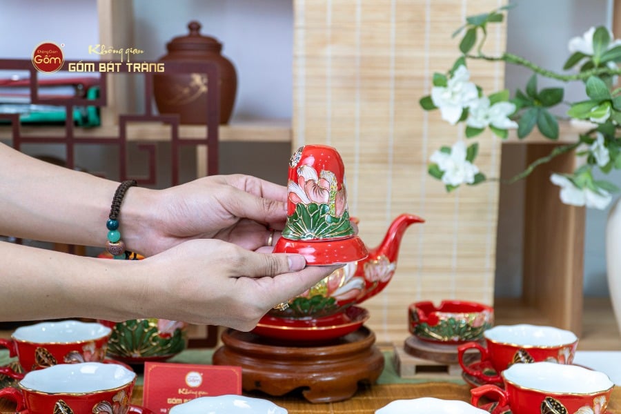 Ưu điểm của Bộ Ấm Chén Queen Đỏ Hoa Sen Đắp Nổi Vẽ Vàng