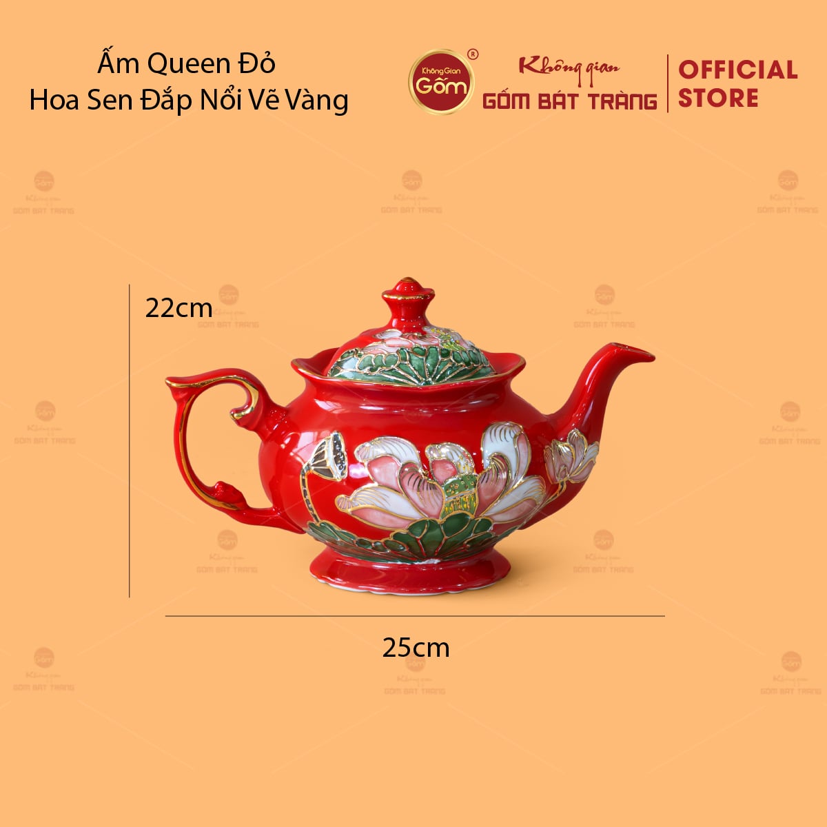 - Tên sản phẩm: Bộ Ấm Chén Queen Đỏ Hoa Sen Đắp Nổi Vẽ Vàng