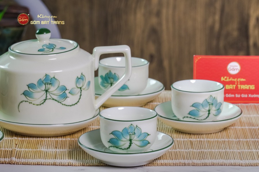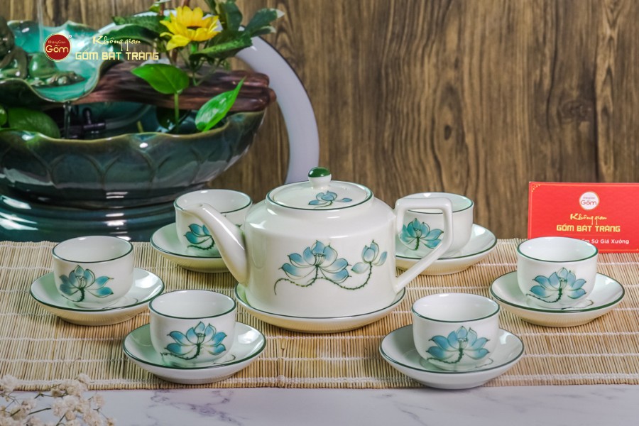 Xem thêm: Bộ Ấm Chén Vuông Quai Đồng Vẽ Sen Xanh | Bộ Ấm Tích Vẽ Ngò Gai 1.5L | Bộ Ấm Chén Thiên Nga Men Kem Sen Xanh