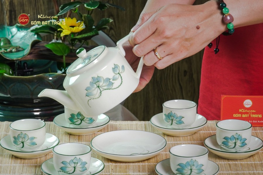 Bộ ấm chén gốm sứ là một trong những sản phẩm được yêu thích và phổ biến trong nhiều gia đình Việt Nam, nhờ vào sự kết hợp hoàn hảo giữa sự đơn giản và tinh tế. Với sắc men kem trắng thanh lịch, bộ ấm chén không chỉ tôn lên vẻ đẹp thanh thoát mà còn dễ dàng hòa quyện vào mọi không gian, từ cổ điển đến hiện đại. Chính sự hài hòa này đã giúp sản phẩm trở thành lựa chọn hàng đầu, luôn đứng đầu trong danh sách những món đồ gốm sứ được ưa chuộng nhất tại làng nghề Bát Tràng.