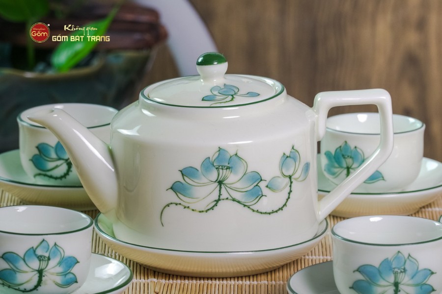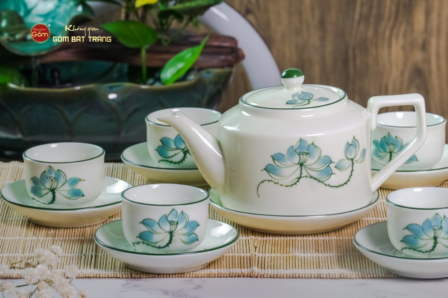 Ý Nghĩa Bộ Ấm Chén Vai Cao Men Kem Vẽ Sen Xanh
