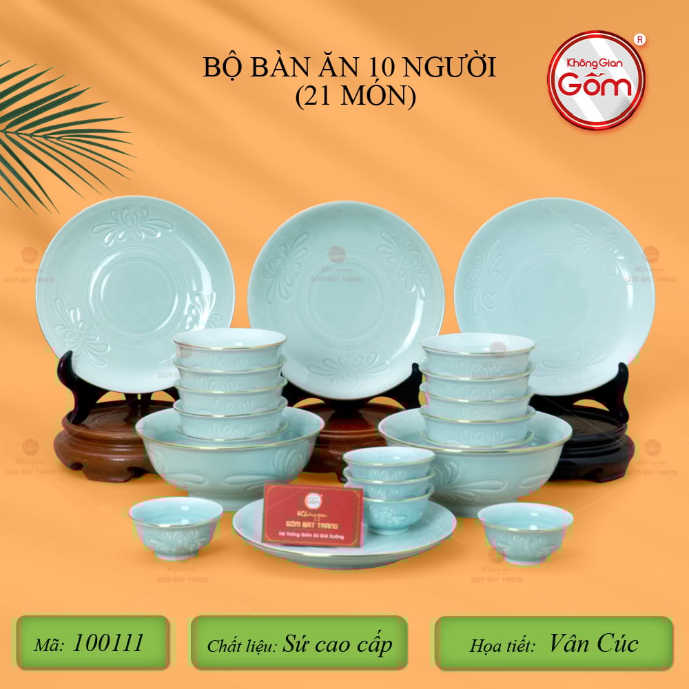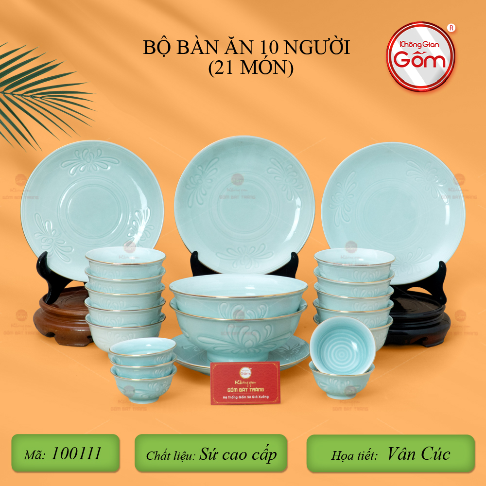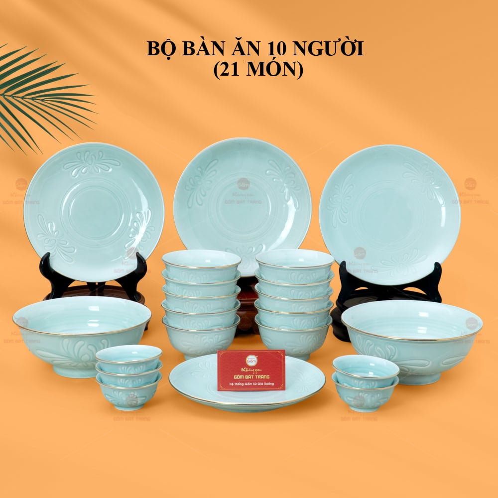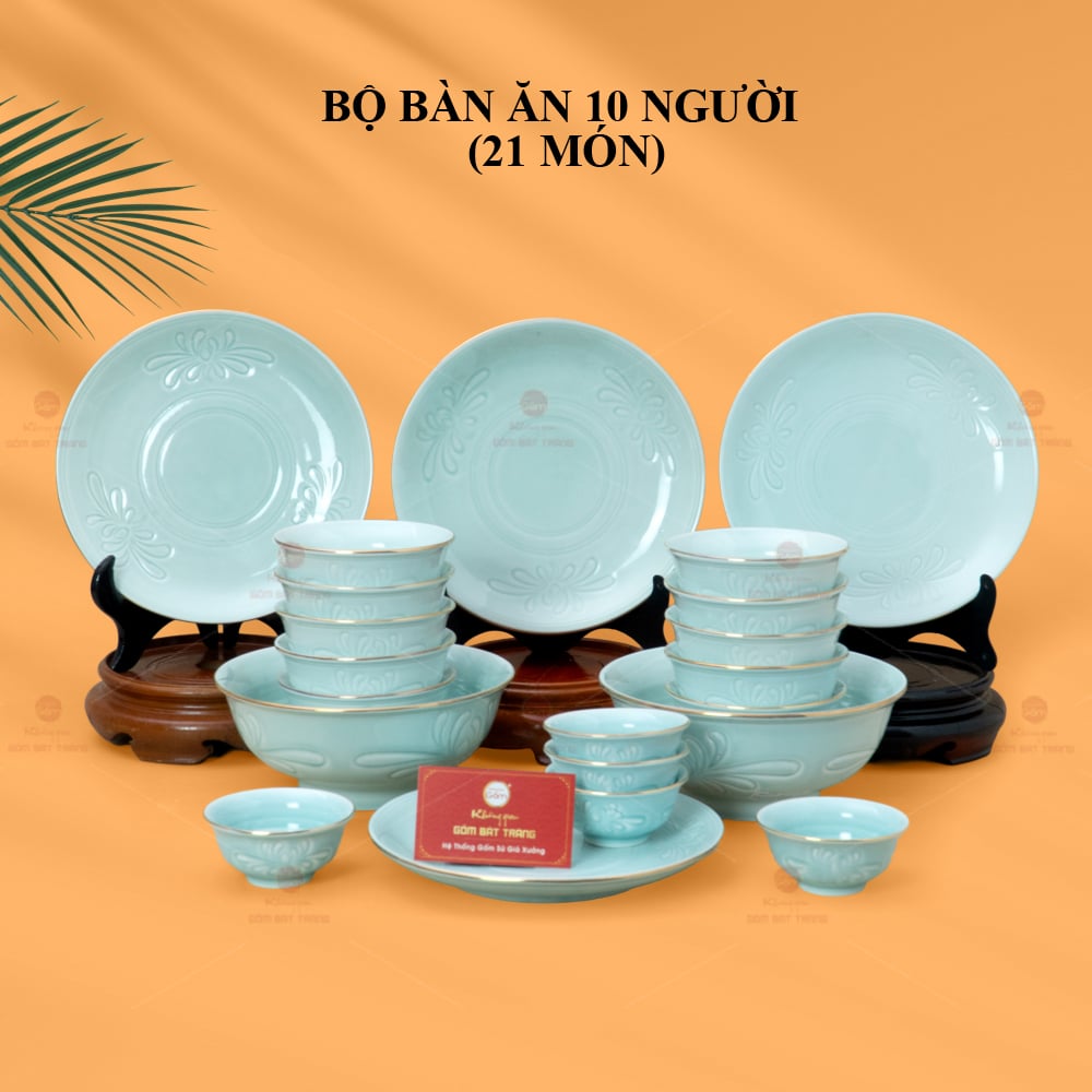 Xem thêm: Bộ Bàn Ăn 10 Người (23 món) Men Biển Xanh Cát Trắng | Bộ Bàn Ăn 10 Người (21 Món) Men Nâu Vân Hoa Cúc | Bộ Bàn Ăn 10 Người (23 món) Men Ngọc Trai