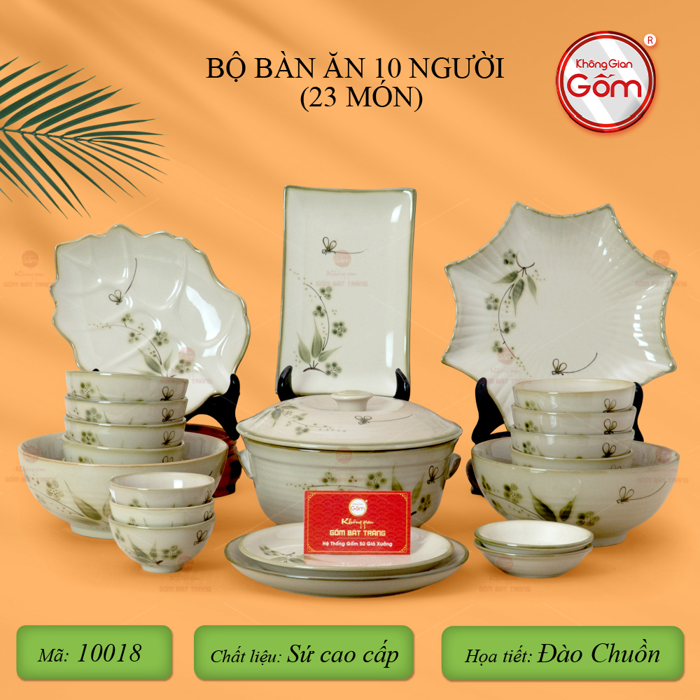 - Tên sản phẩm: Bộ Bàn Ăn 10 Người (23 món) Men Kem Đào Chuồn
