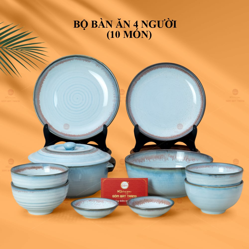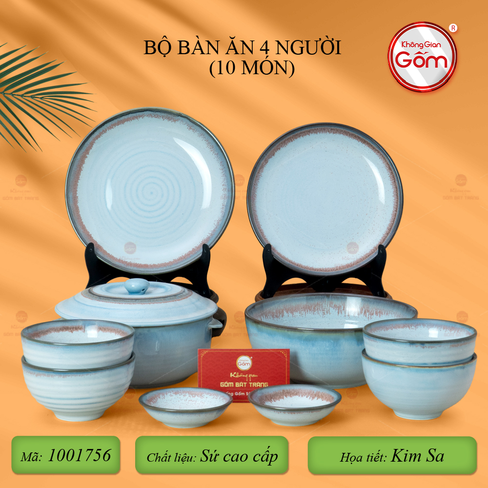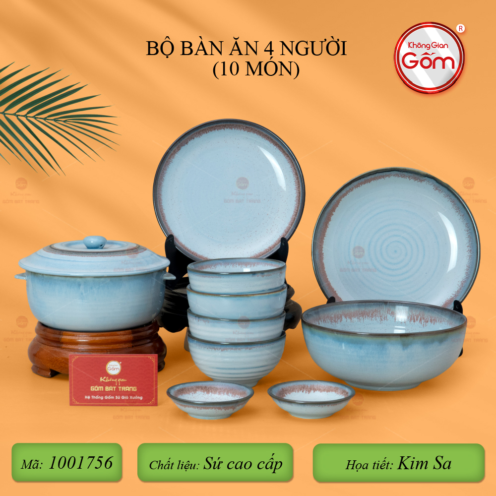 - Tên sản phẩm: Bộ Bàn Ăn 4 Người (10 món) Men Biển Xanh Kim Sa