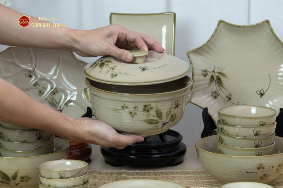 Xem thêm: Bộ Bàn Ăn 10 Người (23 món) Men Xanh Ngọc Vẽ Bèo | Bộ Bàn Ăn 10 Người (23 món) Men Ngọc Hoa Đào Trắng |Bộ Bàn Ăn 6 Người (11 Món) Men Nâu Vân Hoa Cúc