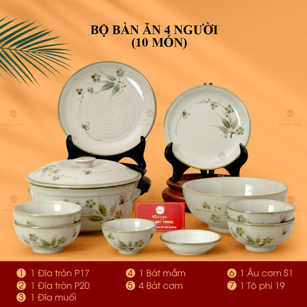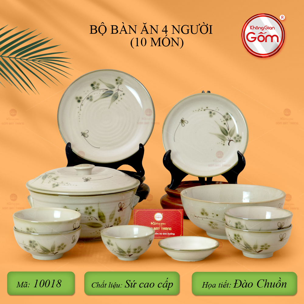 - Tên sản phẩm: Bộ Bàn Ăn 4 Người (10 món) Men Kem Đào Chuồn
