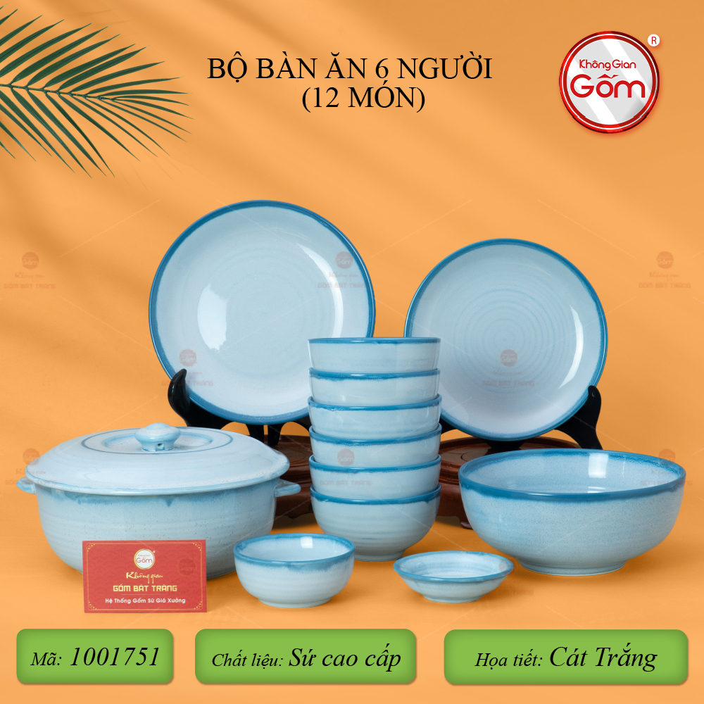 - Tên sản phẩm: Bộ Bàn Ăn 6 Người (12 món) Men Biển Xanh Cát Trắng